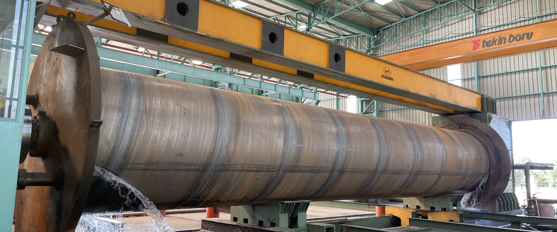 Tekin Boru uses hot rolled Steel coils to produce spiral seam submerged arc welded Steel pipes. By cold forming steel coil takes desired shape and followed by automotic double-side submerged arc welding (S.A.W).
